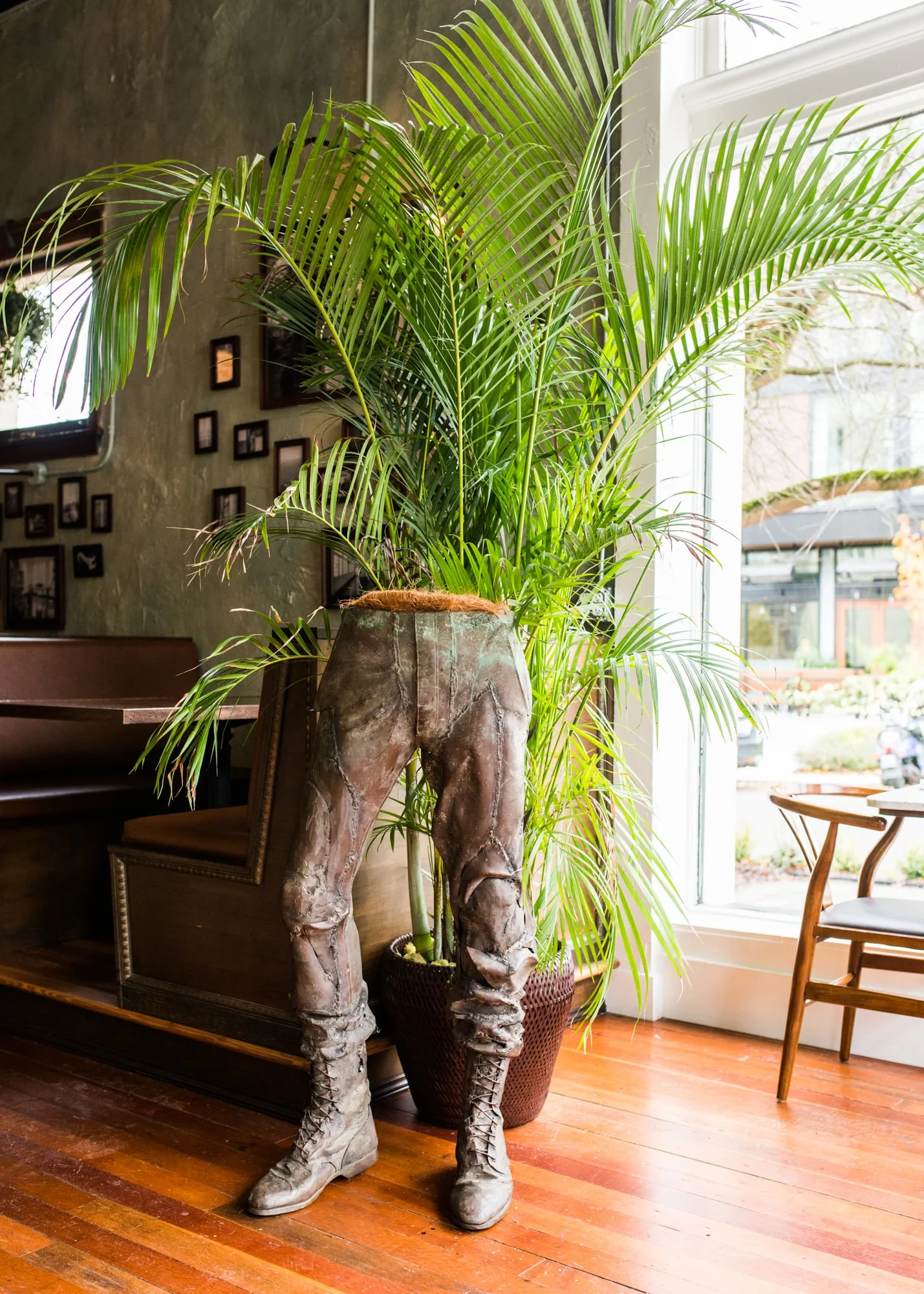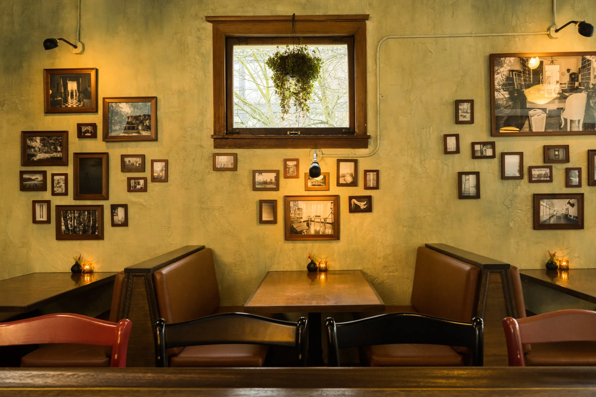 True to Lajeunesse’s design philosophy, the key to this project was retaining the cozy and inviting character of the space that people had come to love during its 20-year tenure as The Kingfish Café. All while restoring and renovating the space from the studs up. To do this, Lajeunesse focused on enhancing the natural character of the building. He brought in 80-year-old Fir to finish the bar floor, antique hardware and built-ins to complete the bar tops and bar back, and recycled The Kingfish Café’s copper bar top as new tabletops.